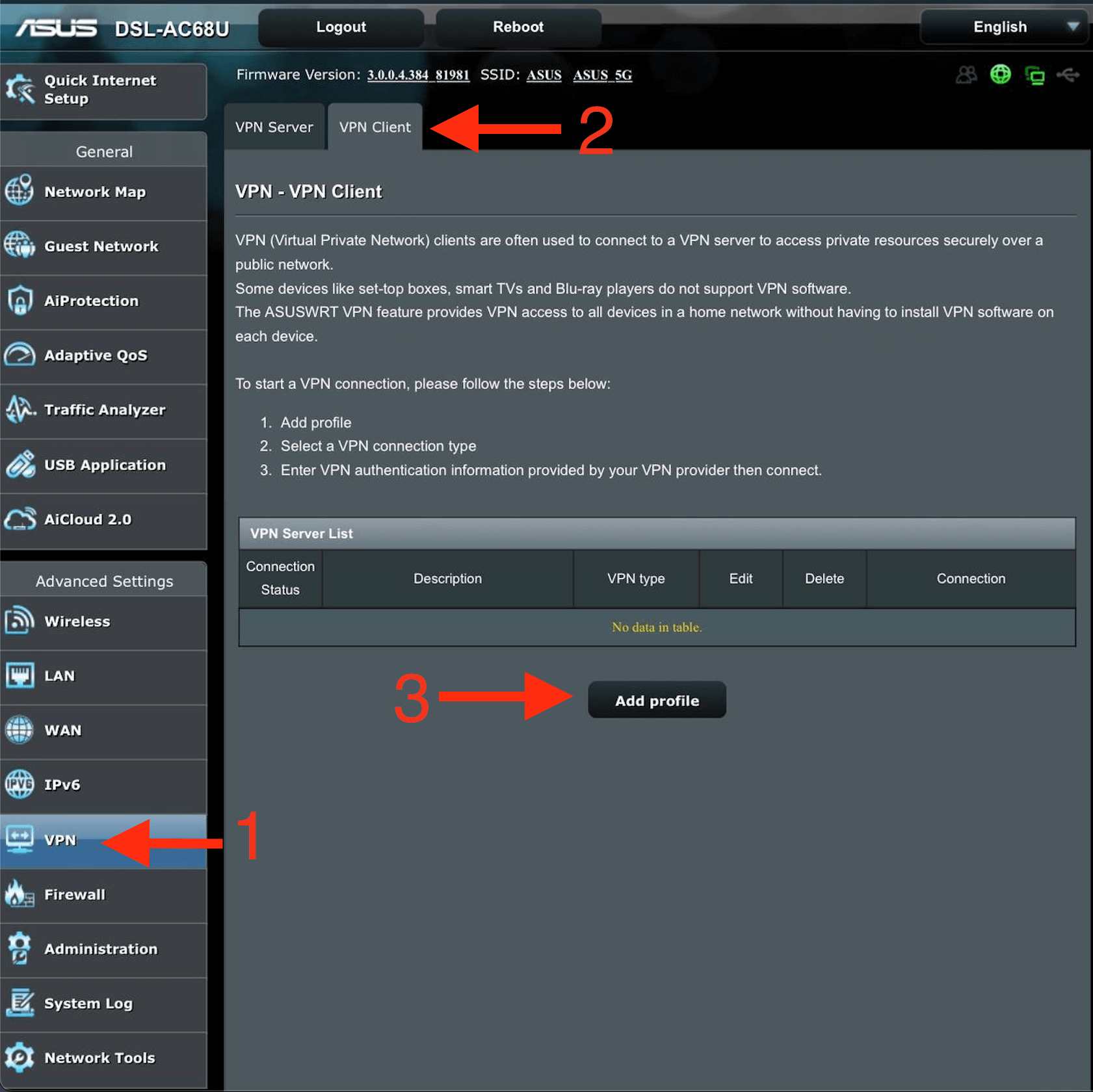سپس از منوی تنظیمات مودم بخش VPN را انتخاب کنید .
