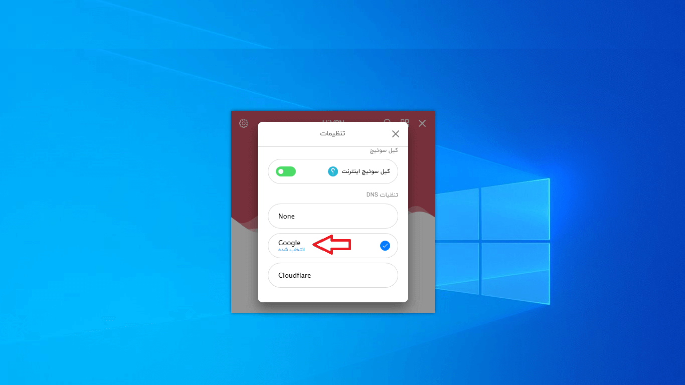 از منوی تنظیمات برنامه میتوانید DNS گوگل یا کلود فلر را برای سرعت بهتر انتخاب کنید.