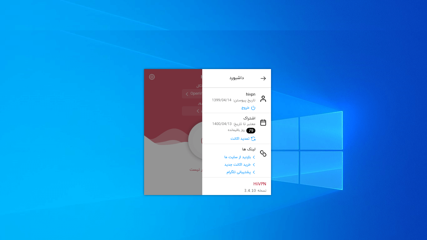 توجه : اگر ویندوز شما قدیمی است و برنامه اصلی HiVPN روی ویندوز شما نصب نمیشود لطفا نسخه HiVPN Legacy را دانلود و نصب نمایید. لینک دانلود HiVPN Legacy