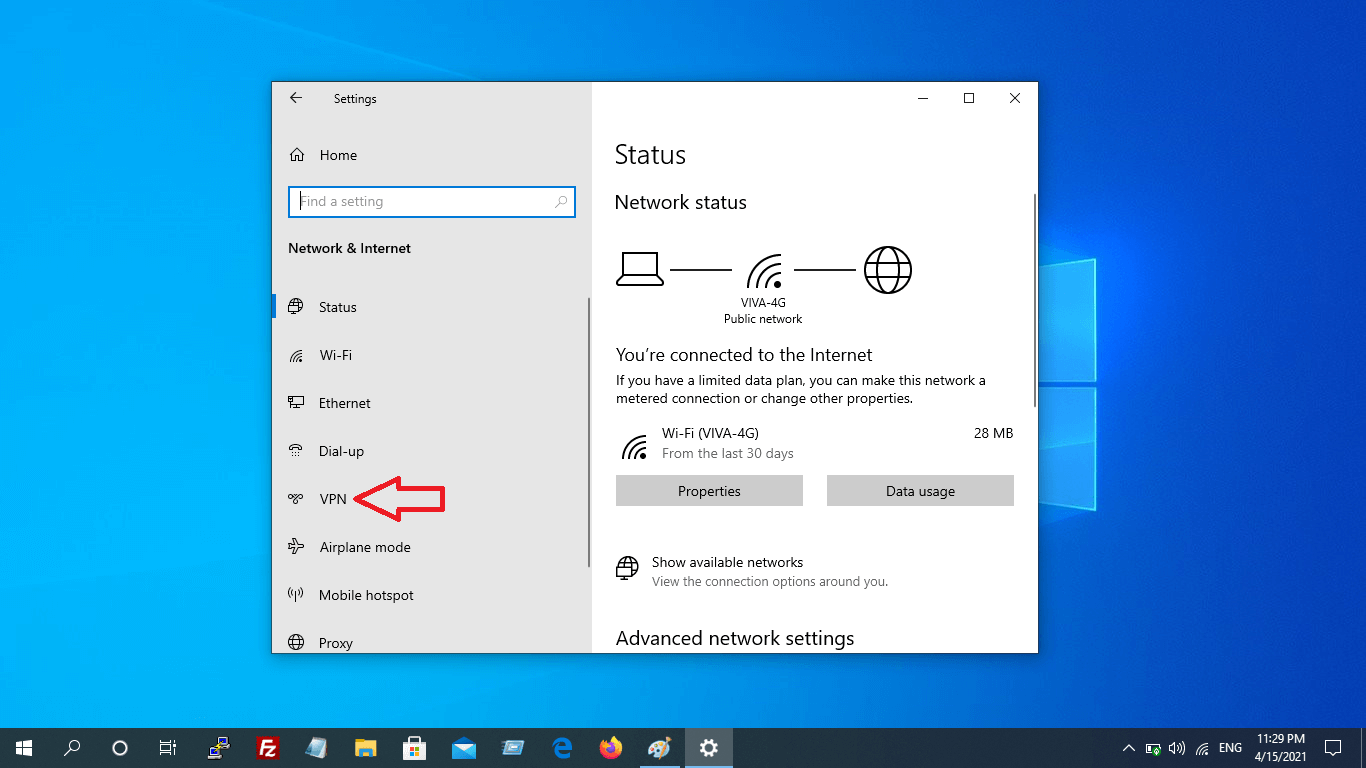 ابتدا روی علامت wifi ویندوز خود راست کلیک کنید و open Network & internet settings را بزنید .