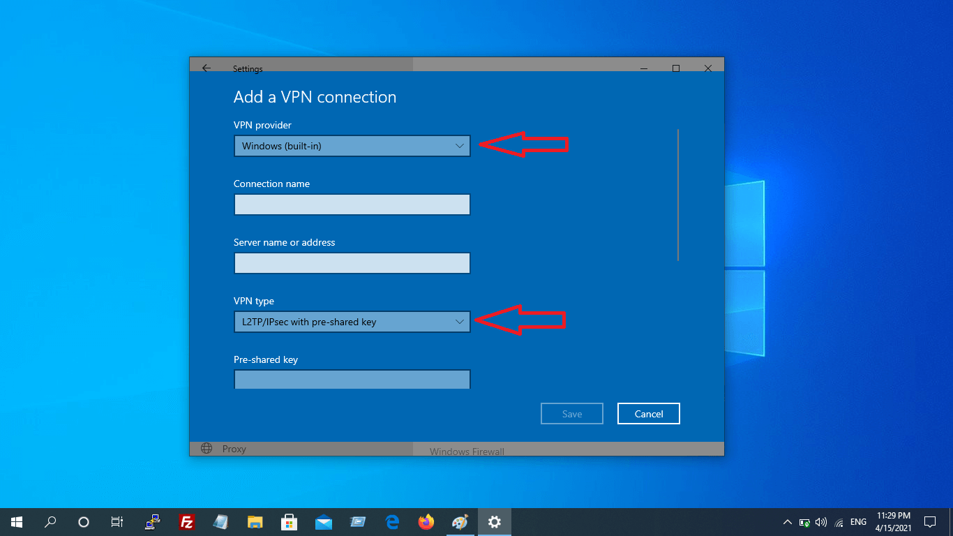 درقسمت VPN Type گزینه L2TP /IPsec with pre-shared key را انتخاب کنید.