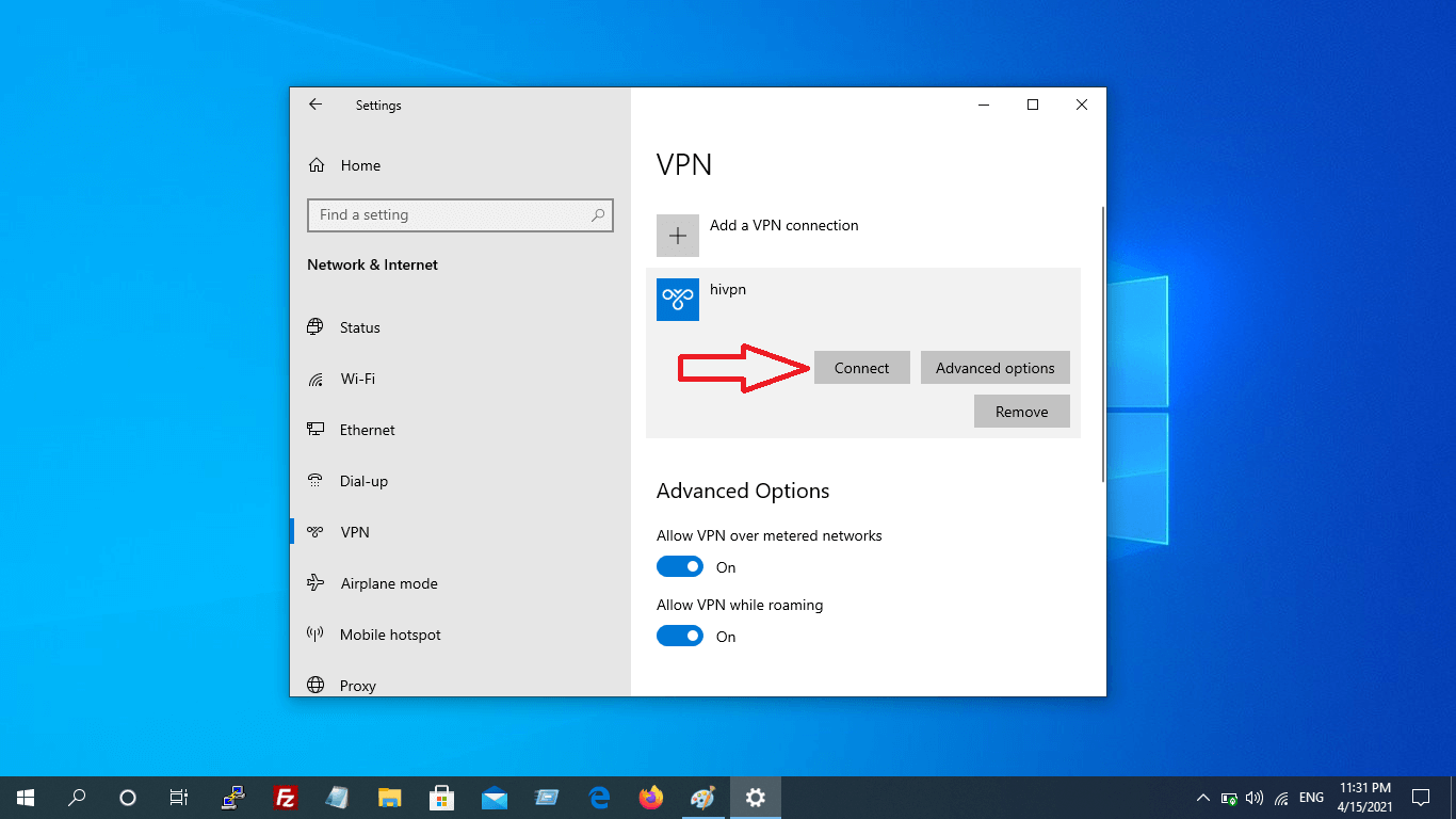 در قسمت Connection name نام hivpn را تایپ کنید.